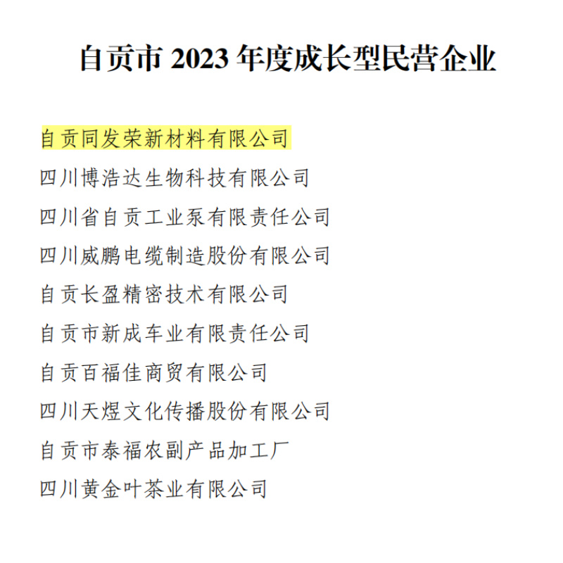 | 自貢同發榮新材料有限公司 榮獲2023年度成長型企業 | ||